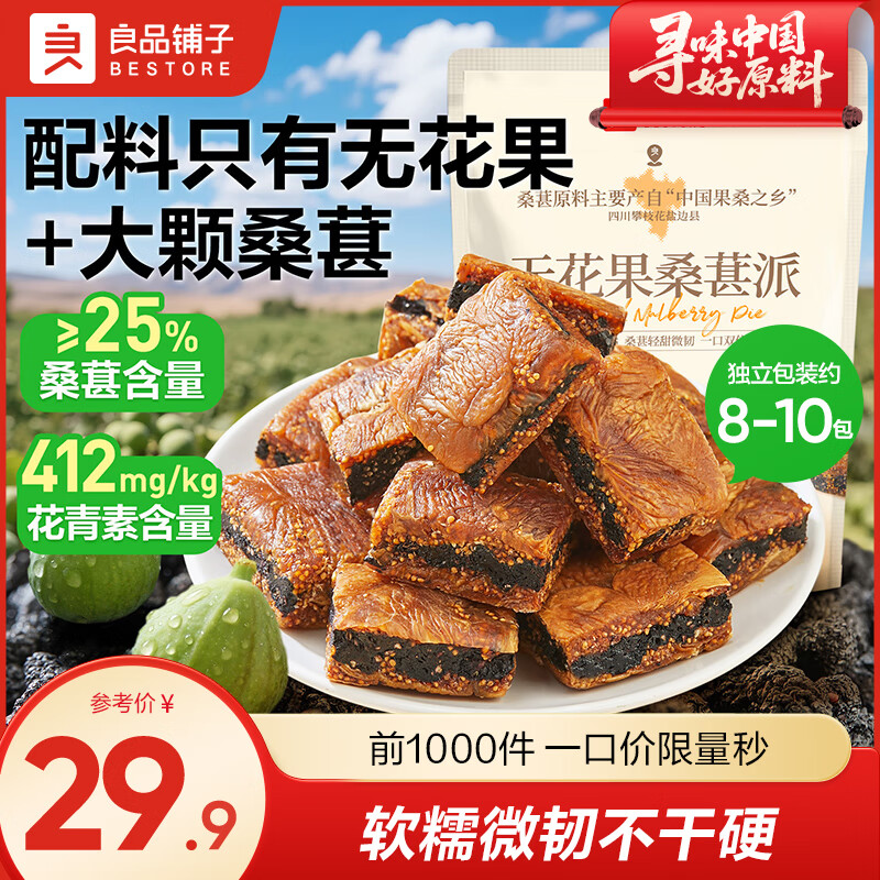 良品铺子无花果干休闲蜜饯果干小零食下午茶特产零食果干 【配料干净】无花果桑葚派200g .