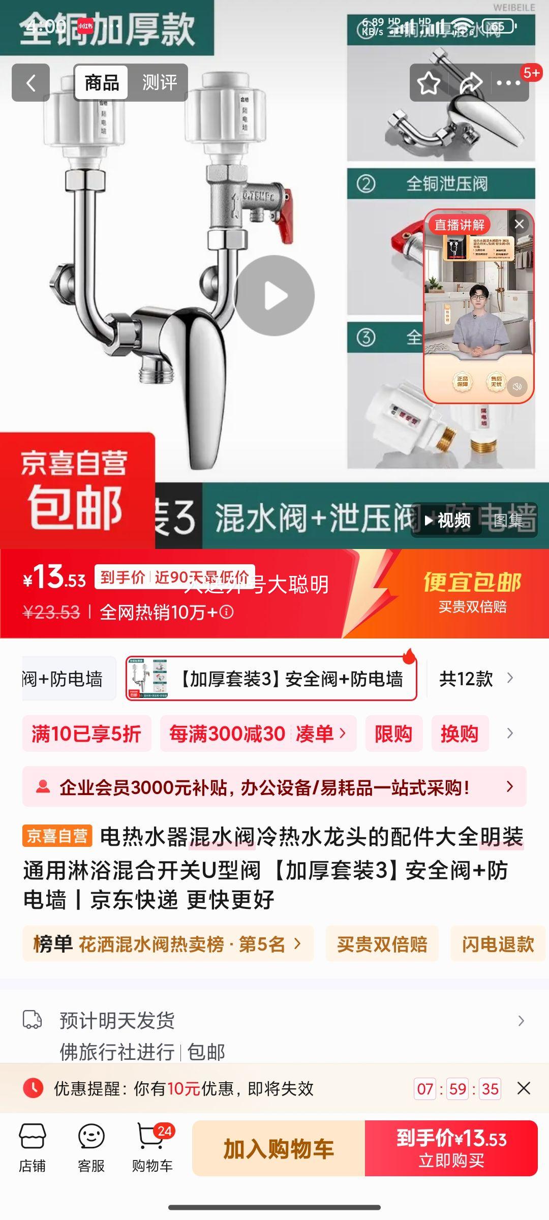 电热水器混水阀 冷热水 龙头的配件大全明装通用淋浴混合开关U型阀 加厚套装3 安全阀+防电墙