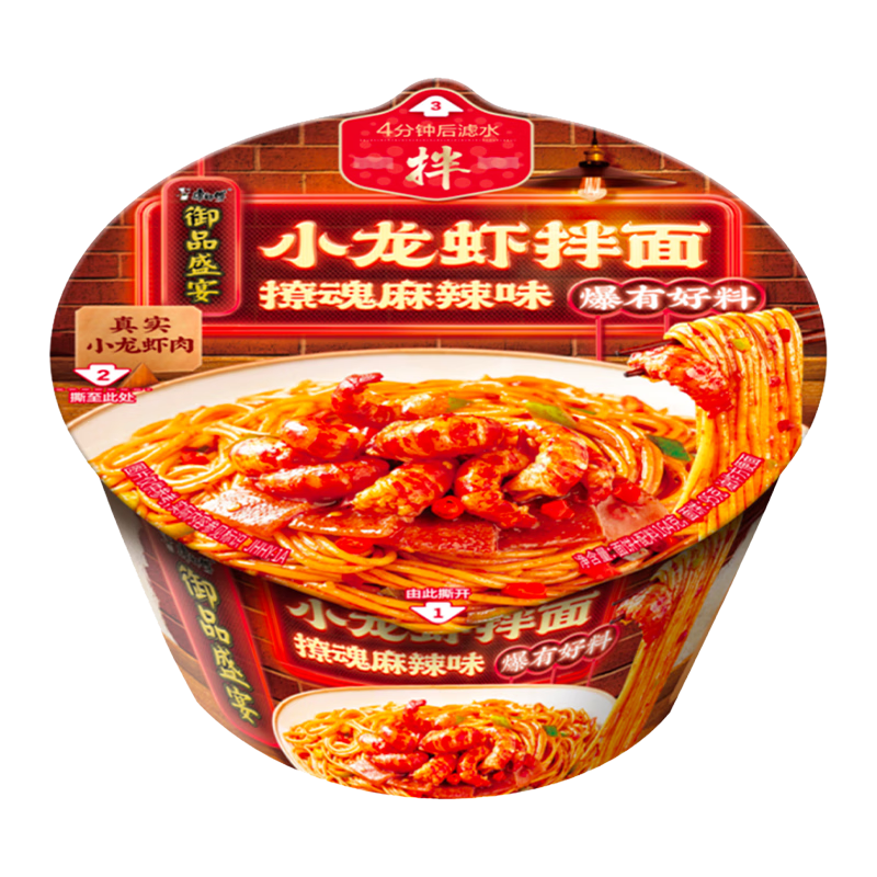 康师傅方便面御品盛宴撩魂麻辣味小龙虾拌面164g单盒夜宵速食