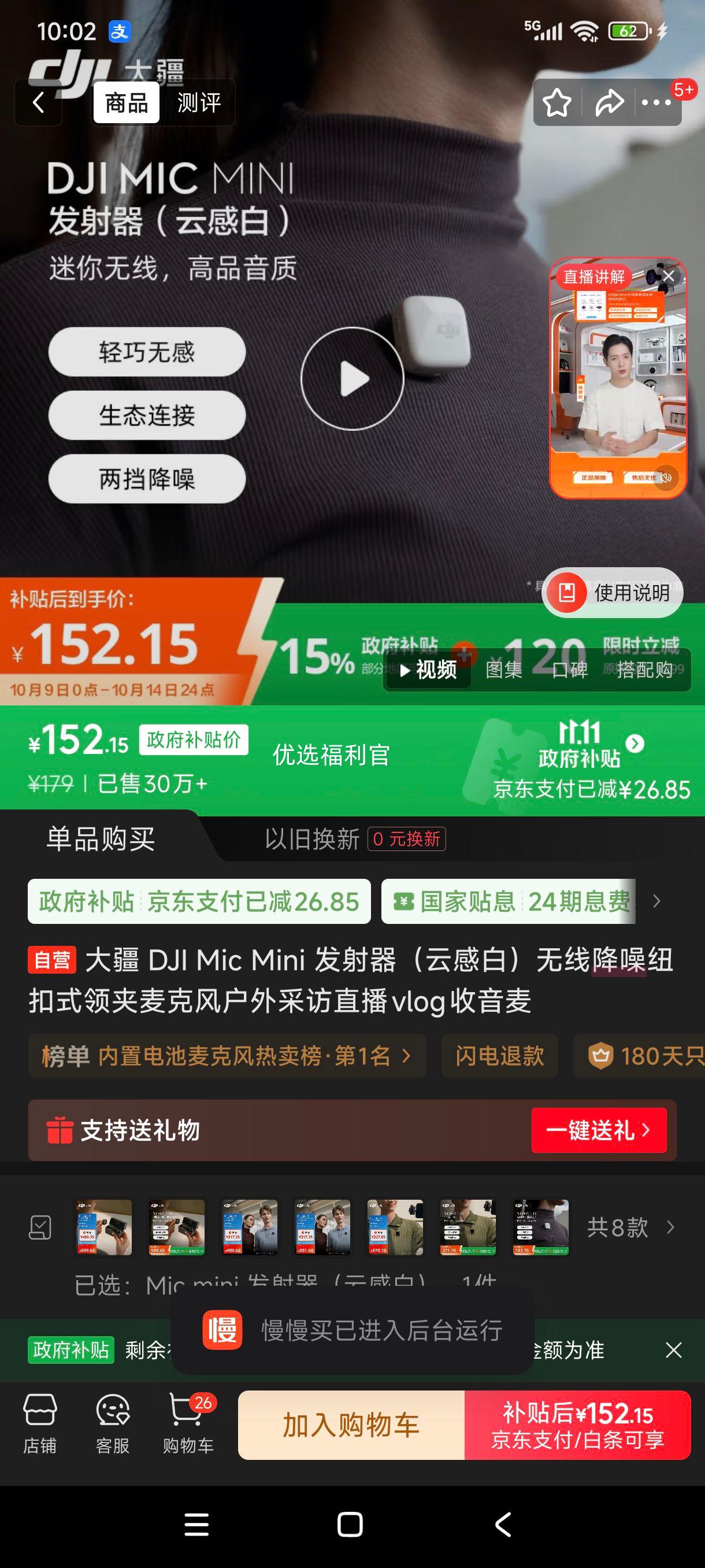双11、限地区、plus:大疆 DJI Mic Mini 发射器(云感白)无线降噪纽扣式领夹麦克风户外采访直播vlog收音麦
