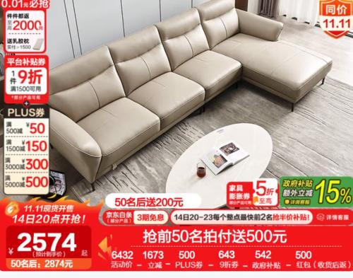 20点:QUANU全友家居 牛皮沙发 3.2m直排+左妃位