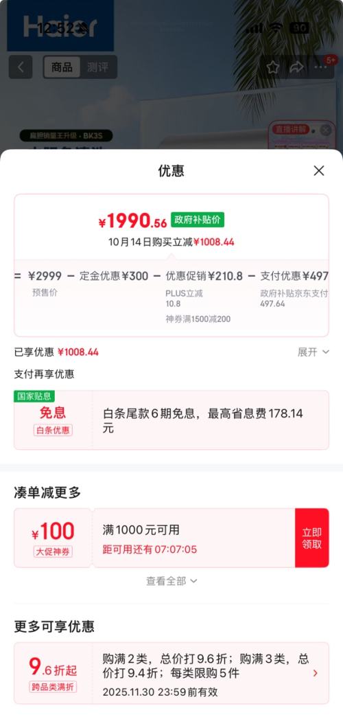 家电-政府补贴15%/20%-部分地区可领(领取链接)