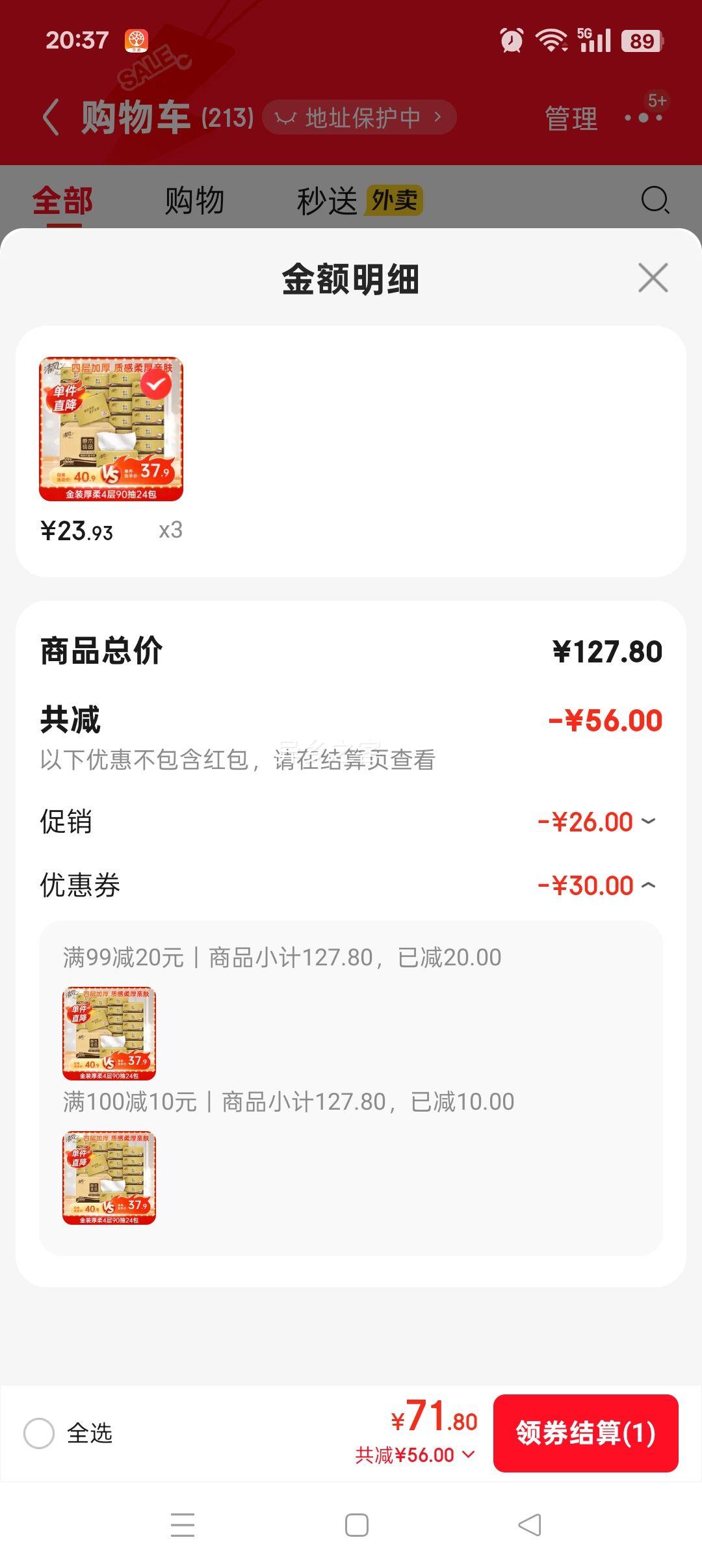 清风抽纸金装厚柔 360张*24包 4层纸巾抽纸抽 整箱 S/M码随机发货