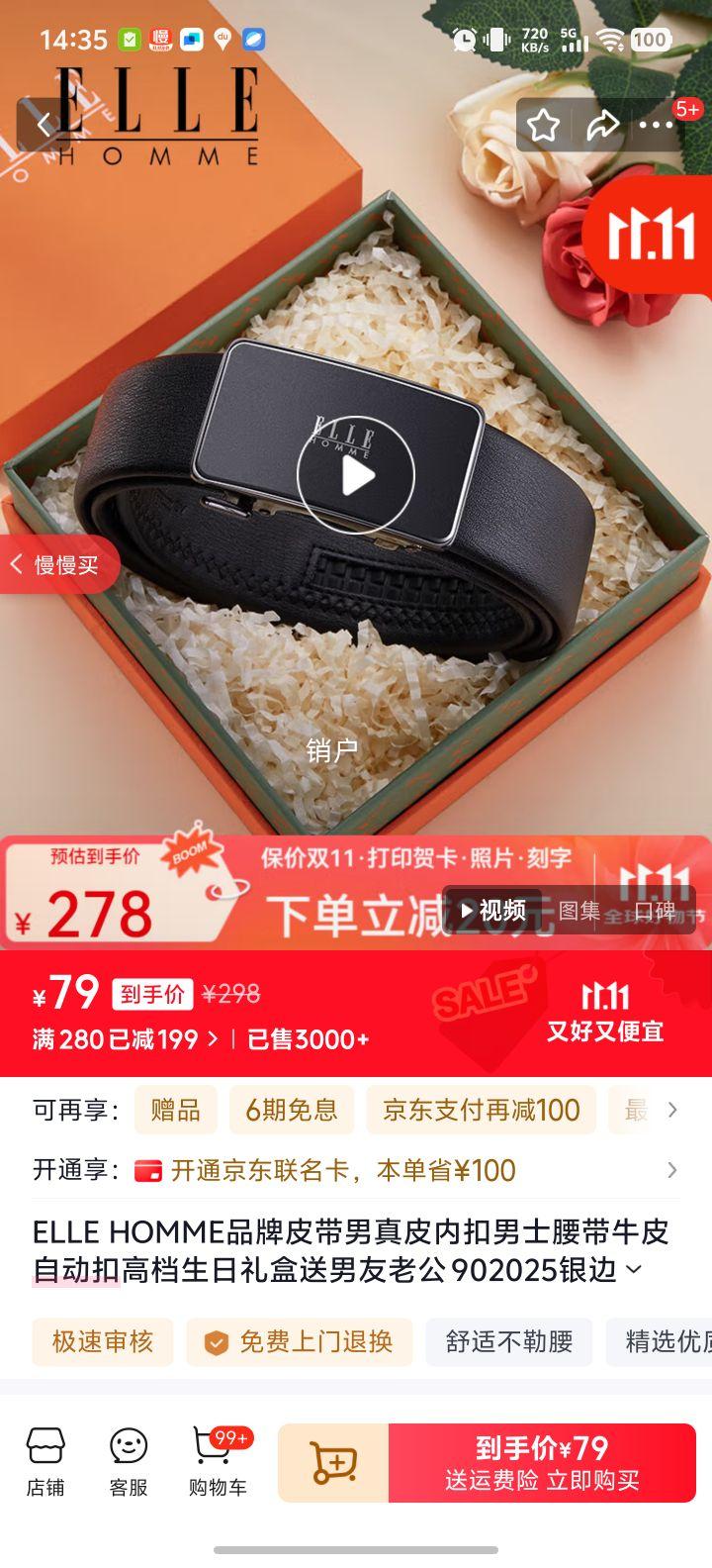 ELLE HOMME品牌皮带男真皮内扣男士腰带牛皮自动扣高档生日礼盒送男友老公 902025银边/头层牛皮/内穿不漏尾 115cm 可联系客服指定长度