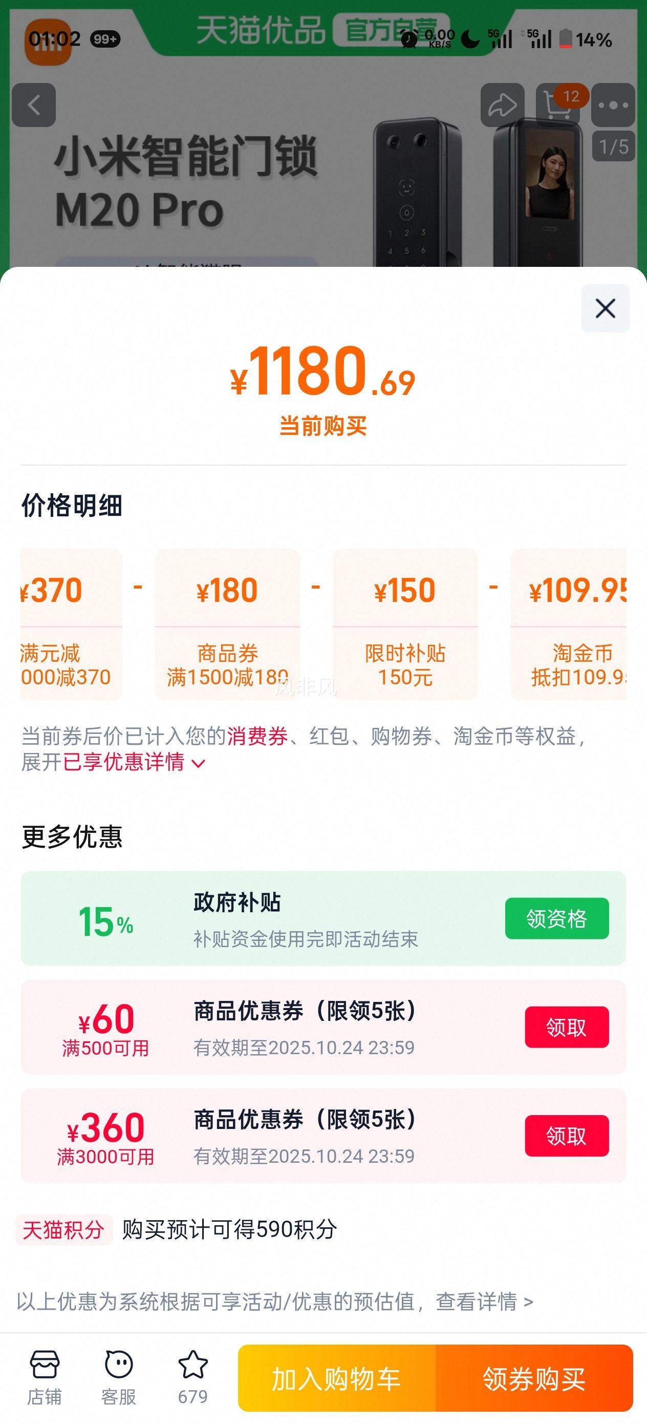 再降价:小米智能门锁M20Pro全自动家用人脸识别密码锁