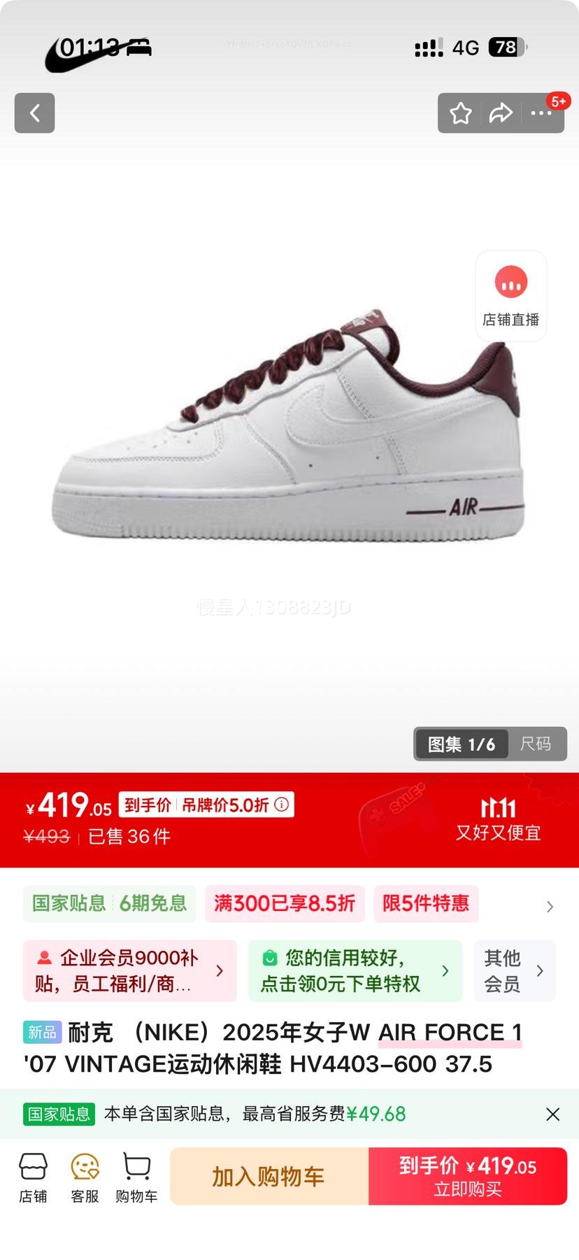 耐克 (NIKE)2025年女子W AIR FORCE 1 '07 VINTAGE运动休闲鞋