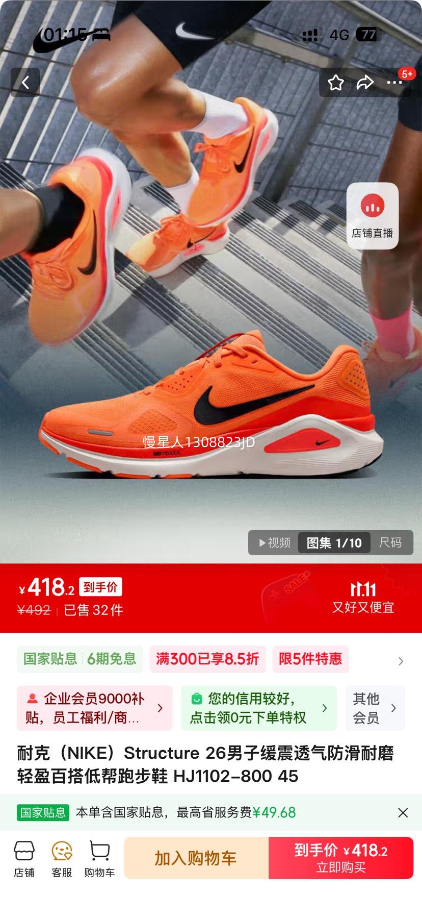 这双耐克Structure 26跑步鞋,轻盈透气,缓震效果超赞!无论是日常跑步还是长距离训练,都能给你稳定舒适的体验。