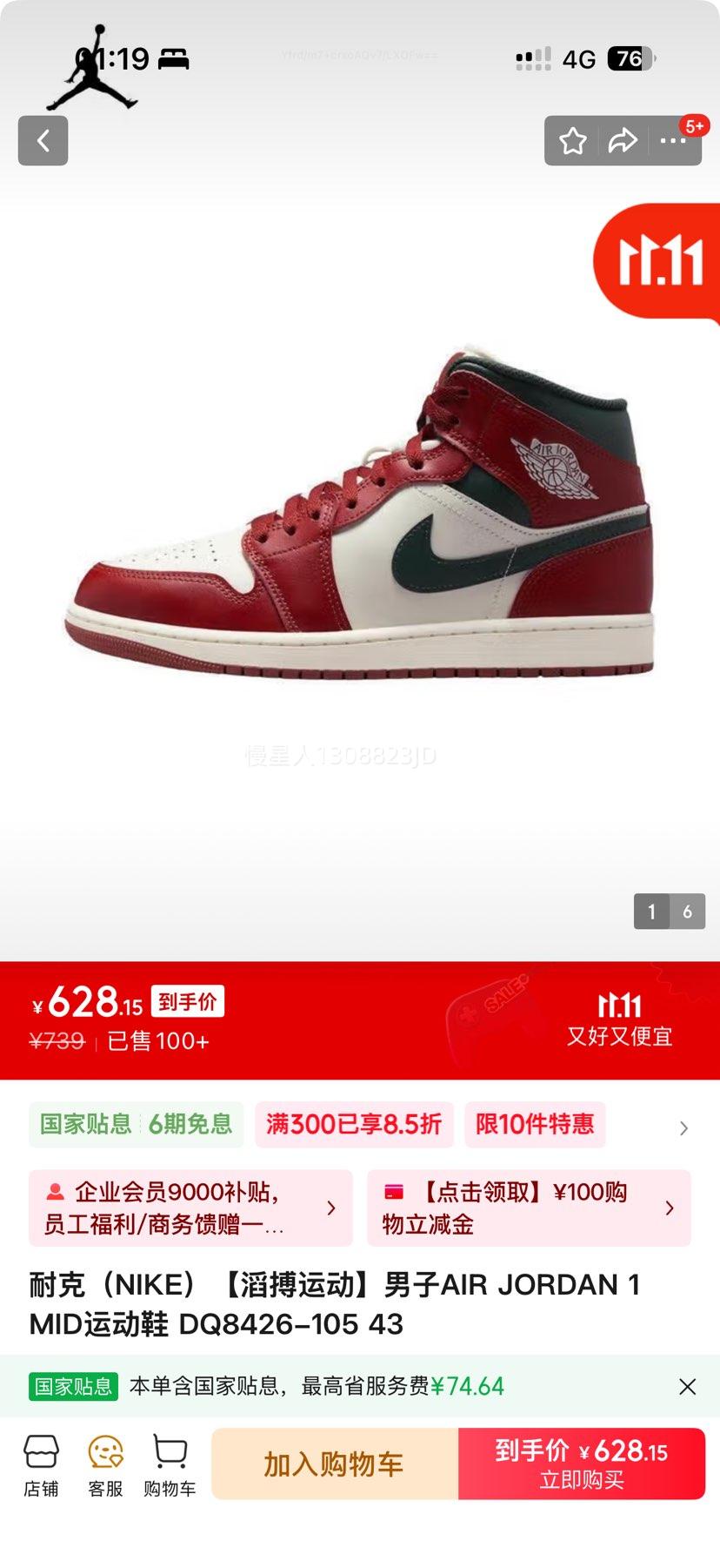 ?? 这双AIR JORDAN 1 MID运动鞋,简约百搭,穿上它你就是球场焦点!舒适的鞋垫和耐磨的外底,让你在运动中无拘无束。无论是日常穿搭还是运动时刻,它都能轻松驾驭。