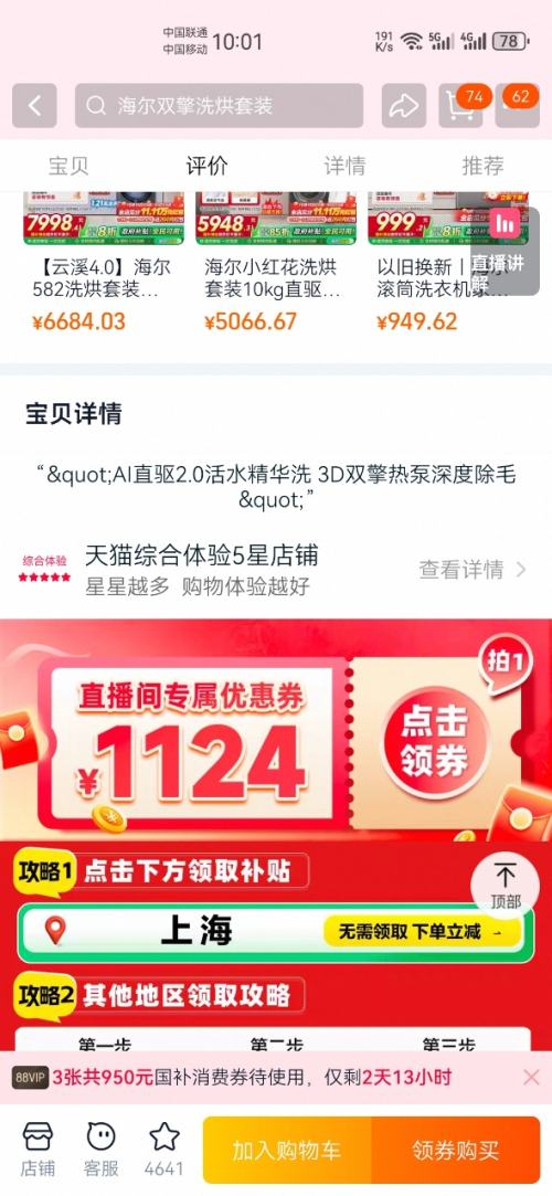 6741.1元+94766淘金币(实际可抵扣更多淘金币低至6728.9)