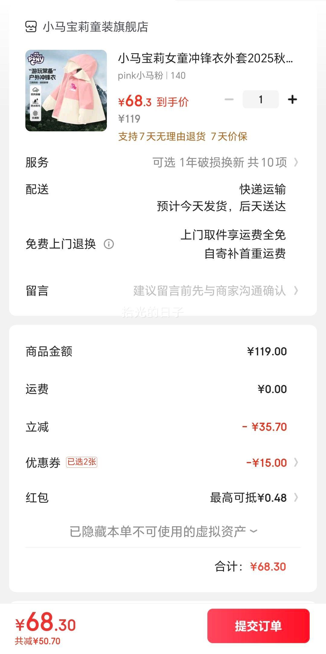 实付单件68.3元