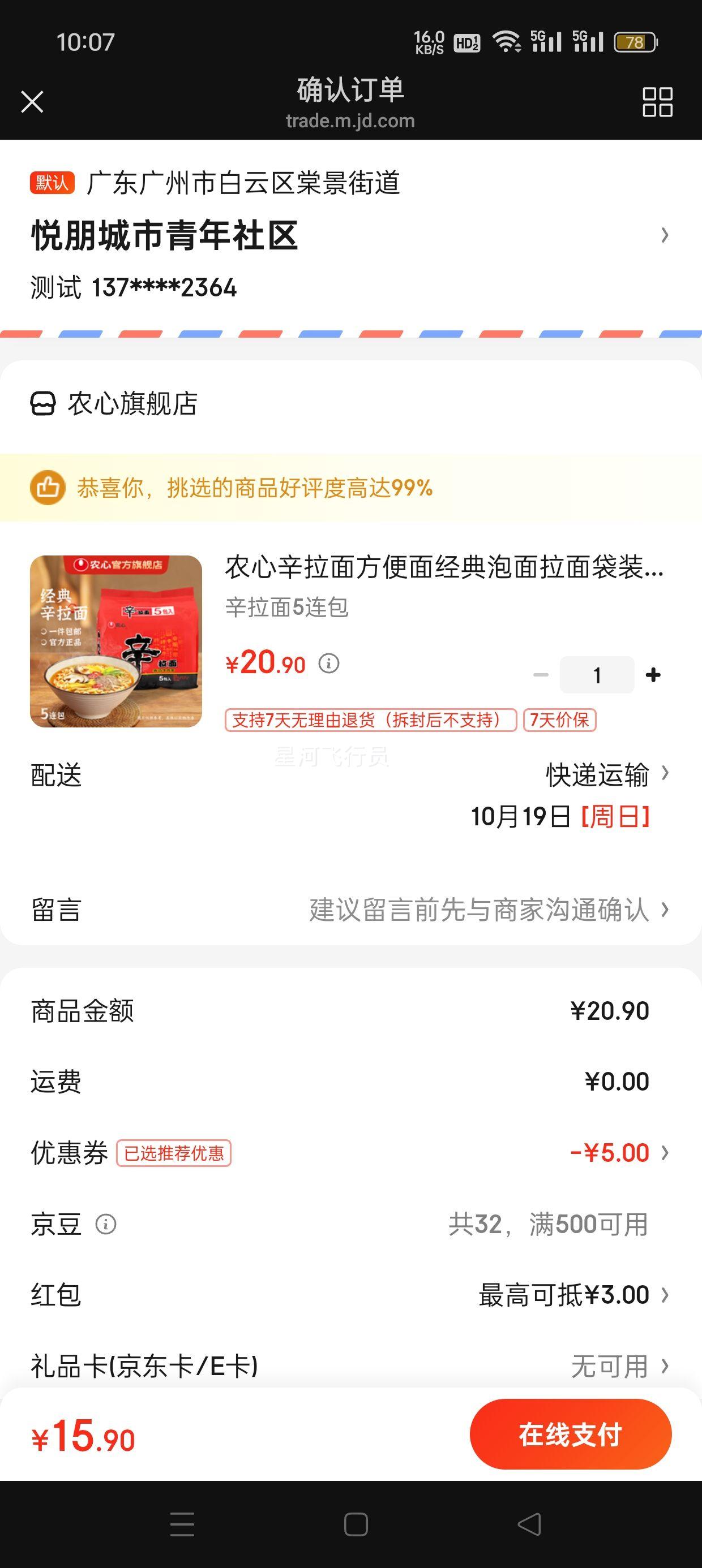 农心辛拉面方便面经典泡面拉面袋装速食面韩式风味多口味多连包 辛拉面5连包