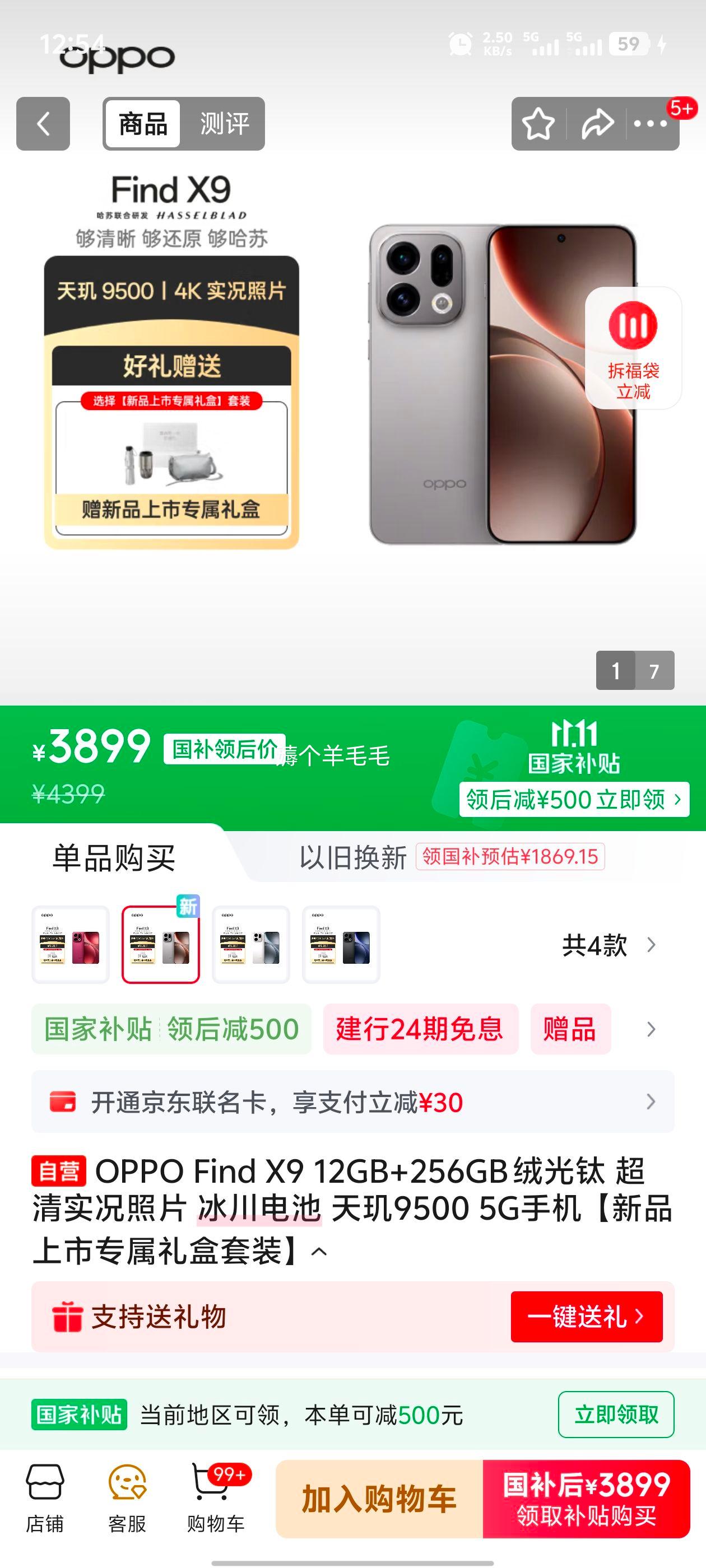 新品上市:OPPO Find X9 12GB+256GB 绒光钛