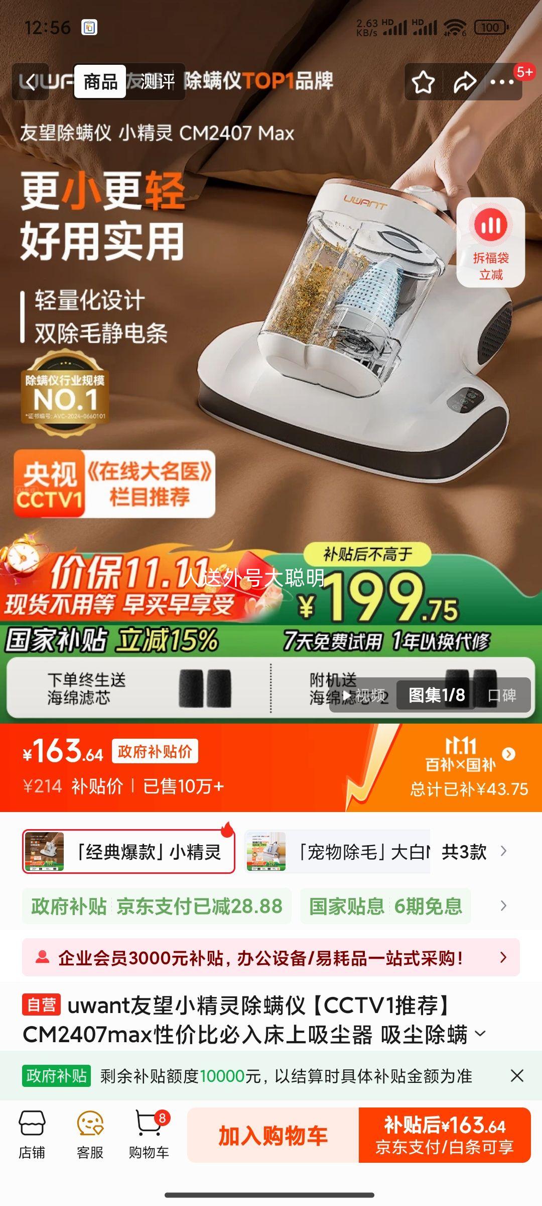 uwant友望小精灵除螨仪 CM2407max性价比必入床上吸尘器 吸尘除螨一体机紫外线杀菌除螨