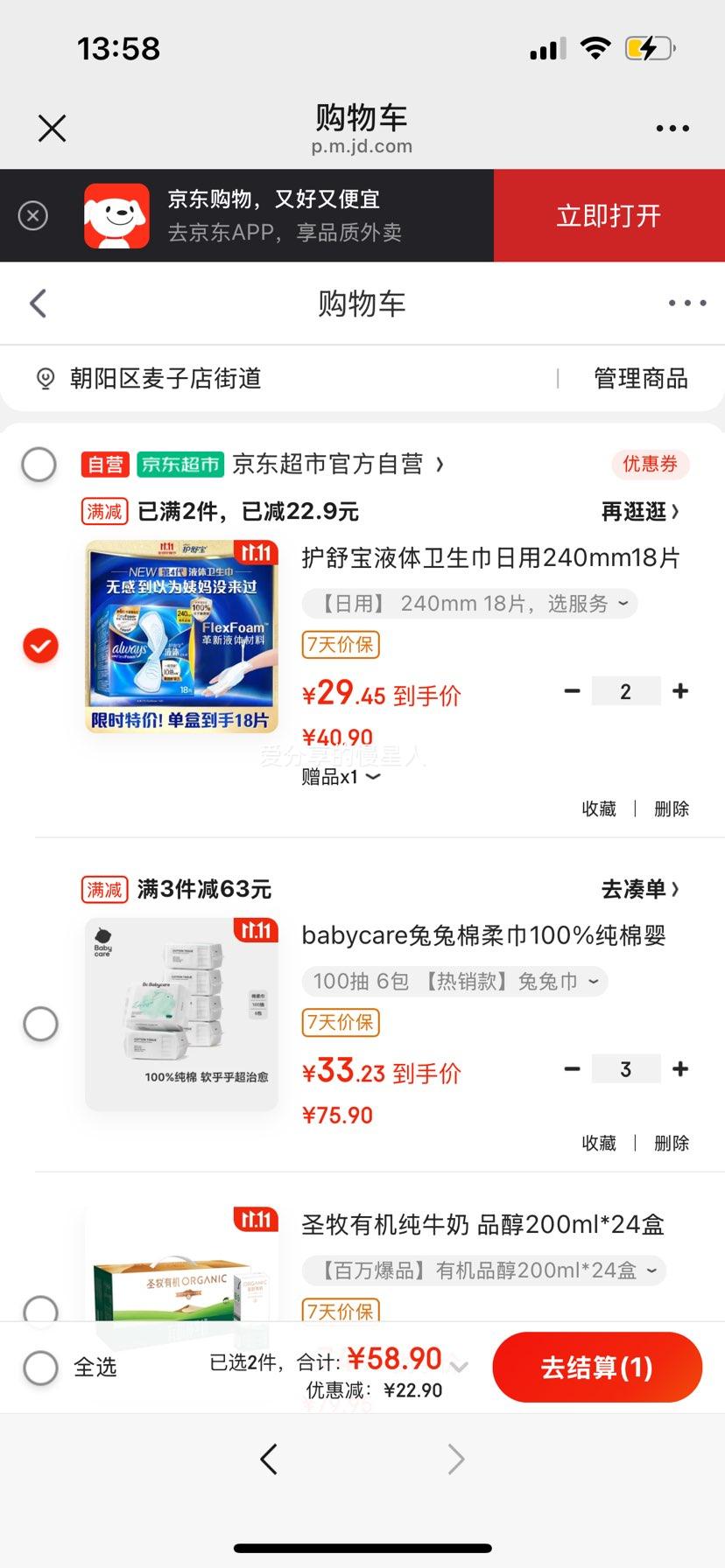 护舒宝液体卫生巾日用240mm18片+270mm8片 拍两件 共
