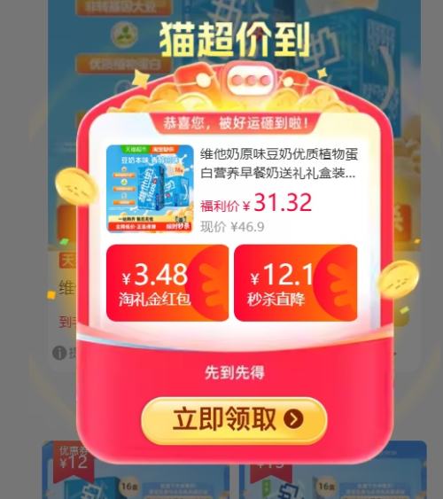 闭眼买、天降礼金:维他奶 原味豆奶 250ml*16盒