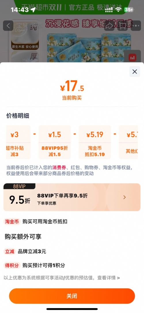 17.5元+5.19元淘金币