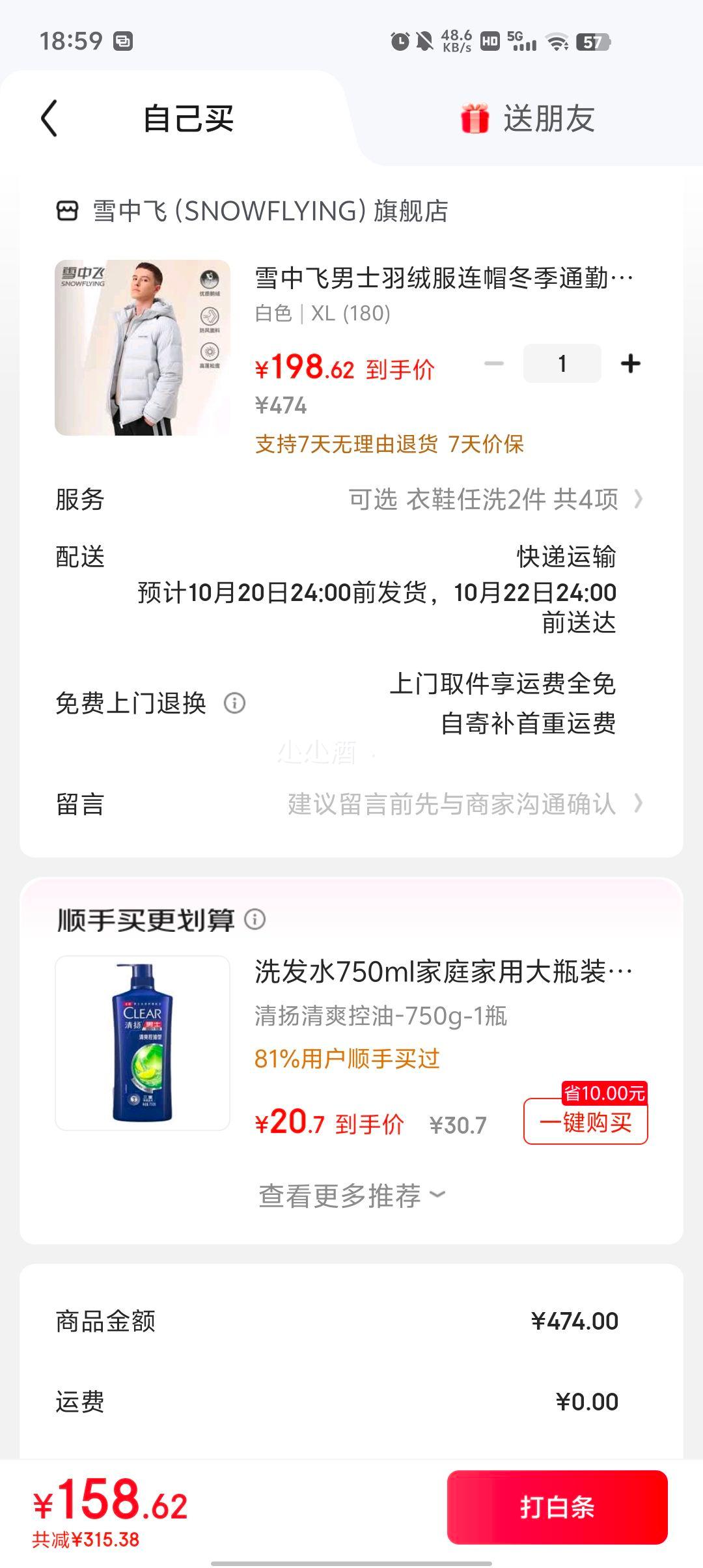 雪中飞 男士鹅绒羽绒服、白条价格更低