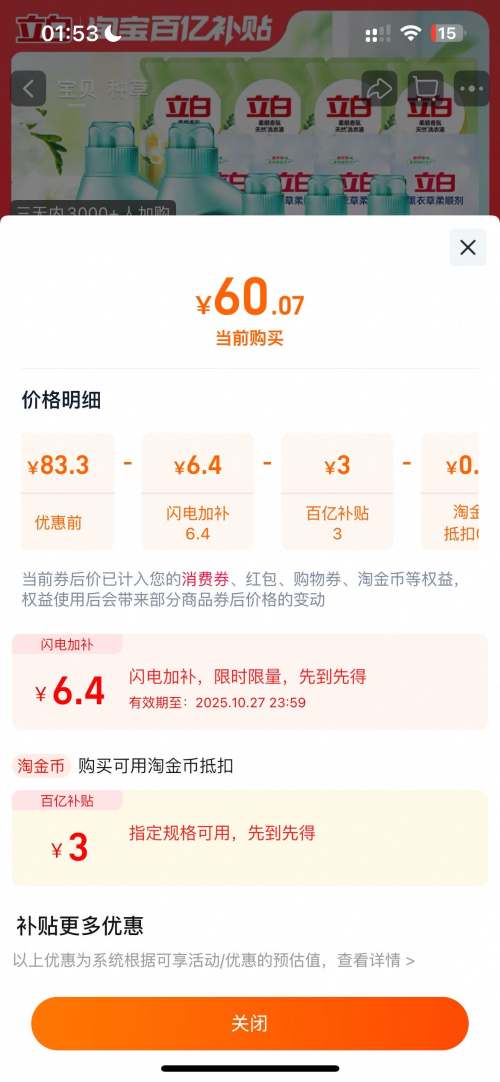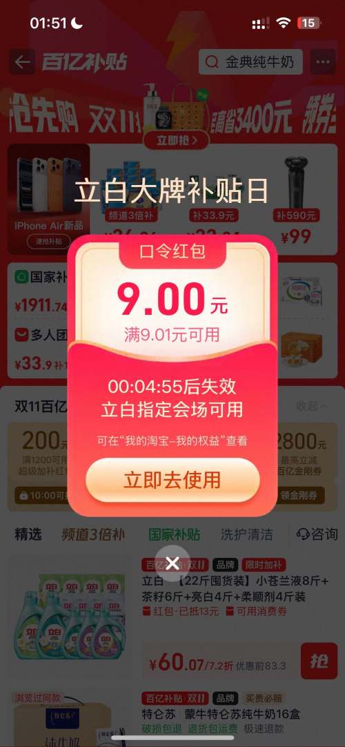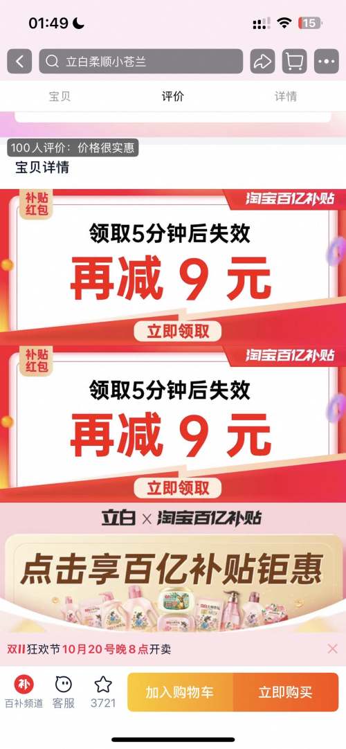 下拉到详情页领取补贴红包立减9元(领取五分钟后自动失效此优惠),按照截图步骤领取