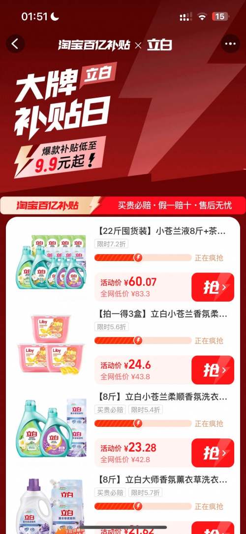 20号20点:立白 小苍兰液8斤+茶籽6斤+亮白4斤+柔顺剂4斤装(22斤)