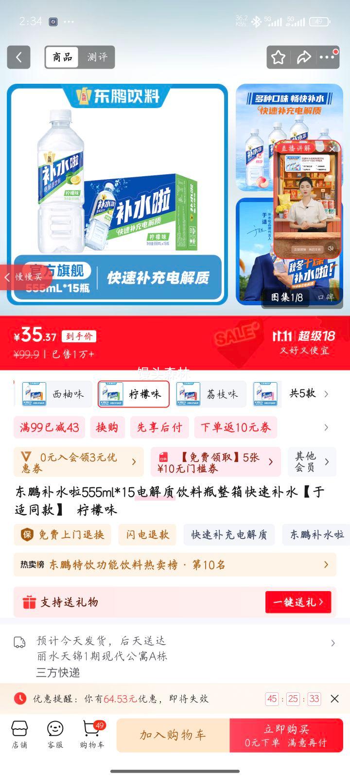 东鹏补水啦555ml*15电解质饮料瓶整箱快速补水【于适同款】 柠檬味