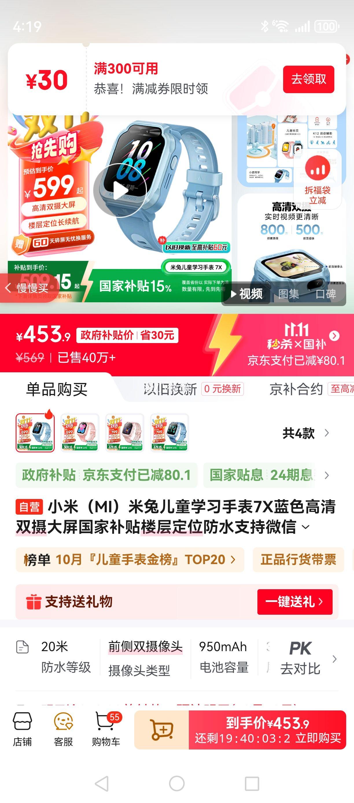 MI/小米 米兔 7X 智能儿童手表 蓝色