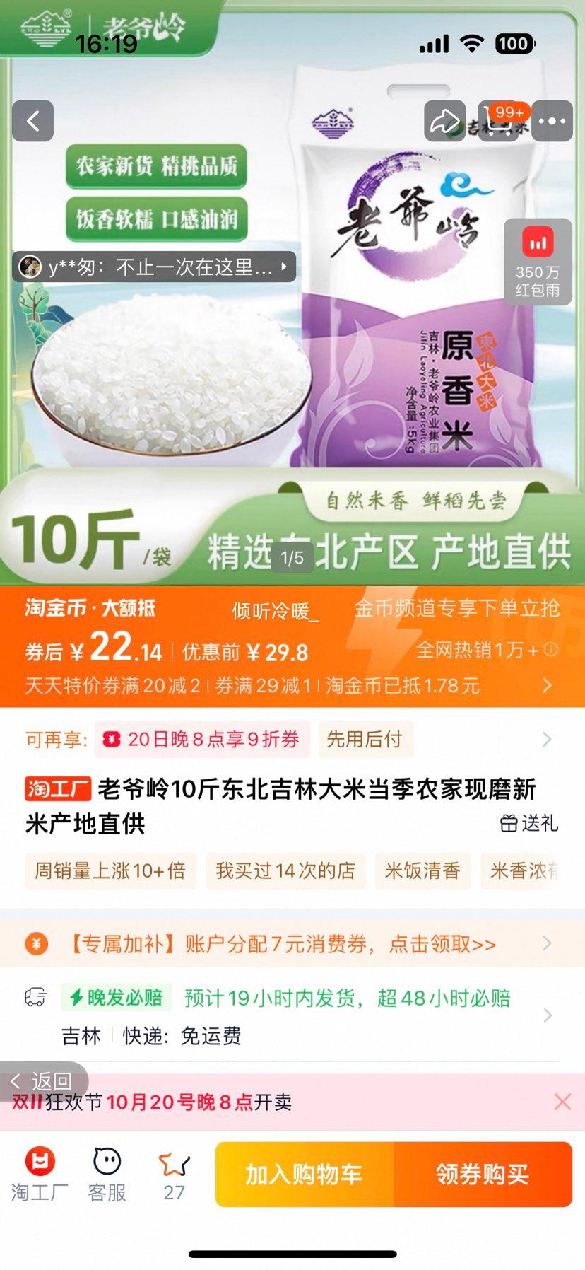 正宗东北大米,到手低于2元/斤 米粒色泽莹润,颗颗饱满 煮熟后颗粒清晰不粘连 入口回甜,粘软适口 米香真的太浓郁了