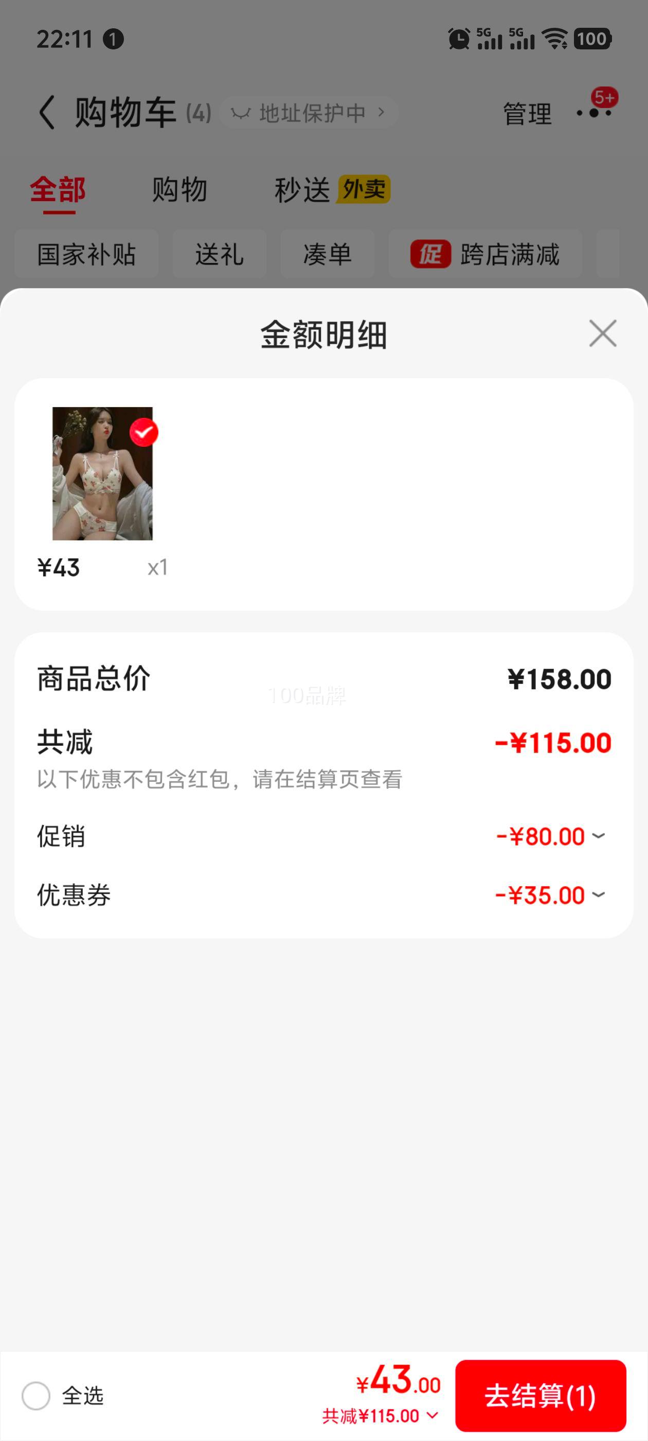实付单件43元
