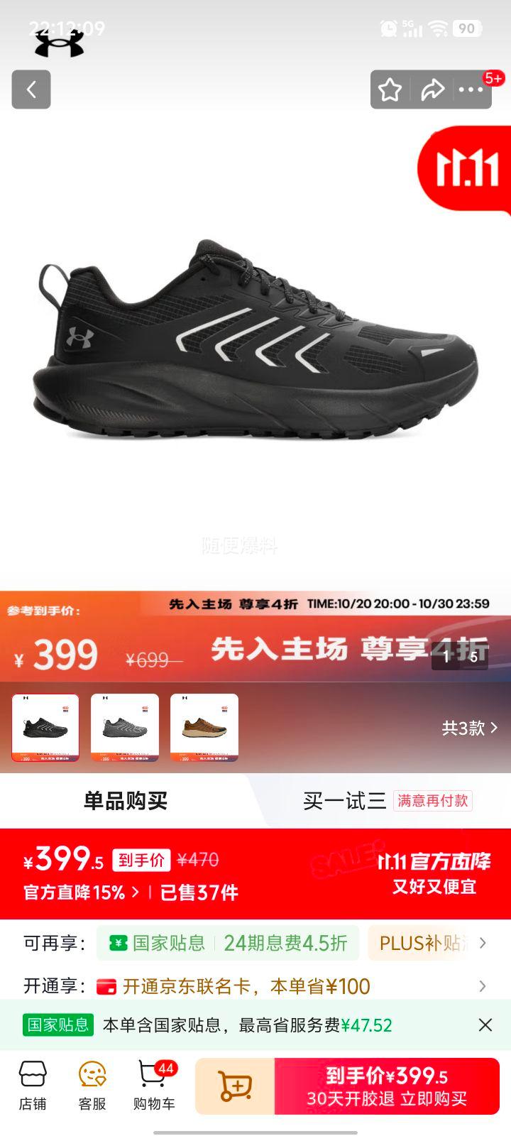 安德玛 UA秋冬U Trailblazer男女情侣户外运动休闲鞋6010426 黑色001 41
