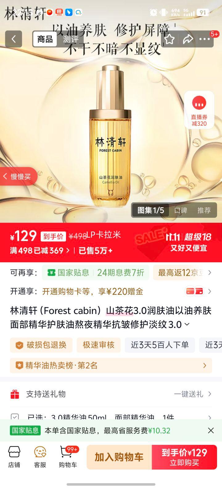 林清轩(Forest cabin) 山茶花3.0润肤油以油养肤面部精华护肤油熬夜精华抗皱修护淡纹 3.0精华油 50ml 面部精华油