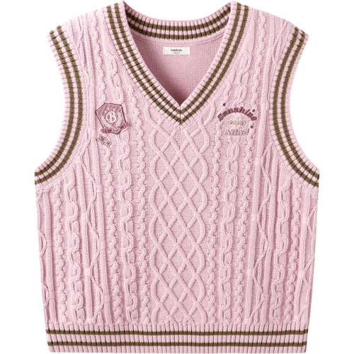 聚划算:粉雾晨光-学院甜美风 130cm 巴拉巴拉马甲女童宽松毛织背心