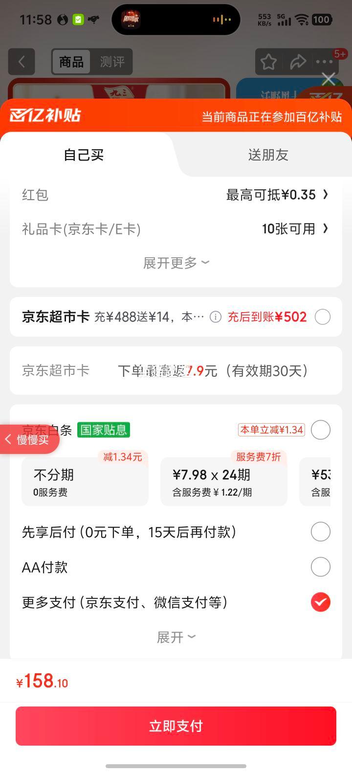 京东超市 百亿补贴--满减149元立返5%超市卡(领取链接)