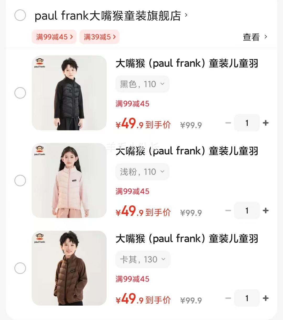 > 大嘴猴 儿童秋冬薄款羽绒...