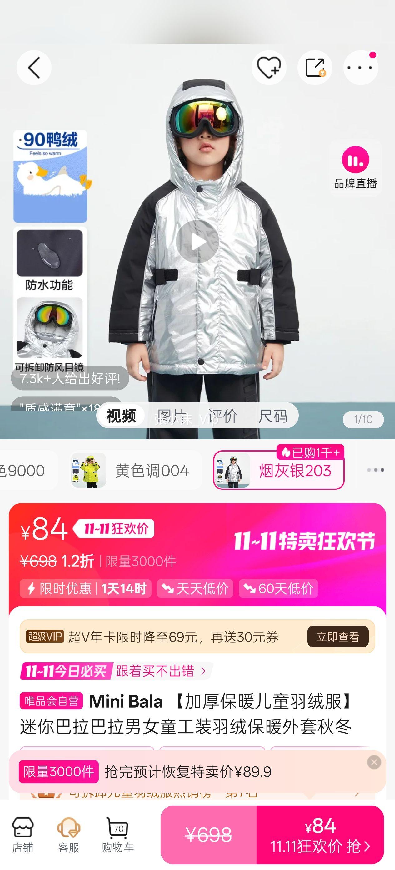 Mini Bala 【加厚保暖儿童羽绒服】迷你巴拉巴拉男女童工装羽绒保暖外套秋冬