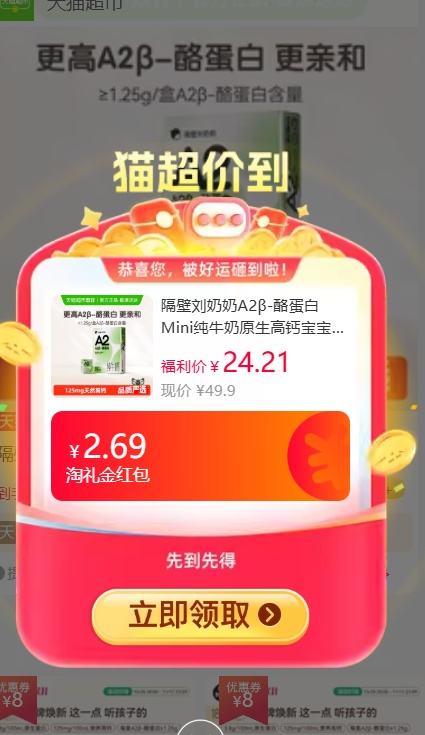 88VIP、天降礼金:隔壁刘奶奶 A2β-酪蛋白纯牛奶 利乐砖 纯牛奶 125ml*9盒