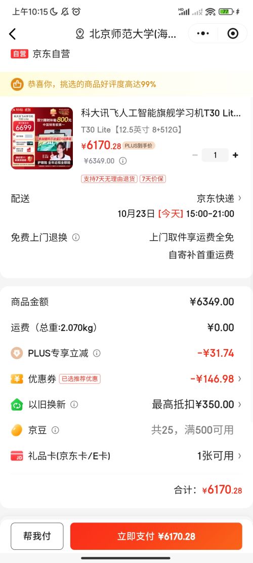 再降价、plus会员:科大讯飞人工智能旗舰学习机T30 Lite 12.5英寸护眼大屏 中高考同源技术 星火+DeepSeek双AI模型 8+512G
