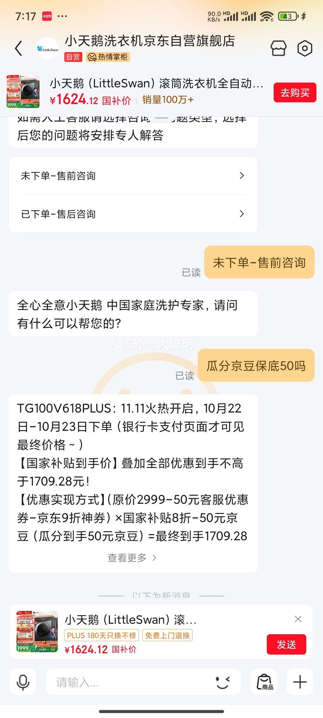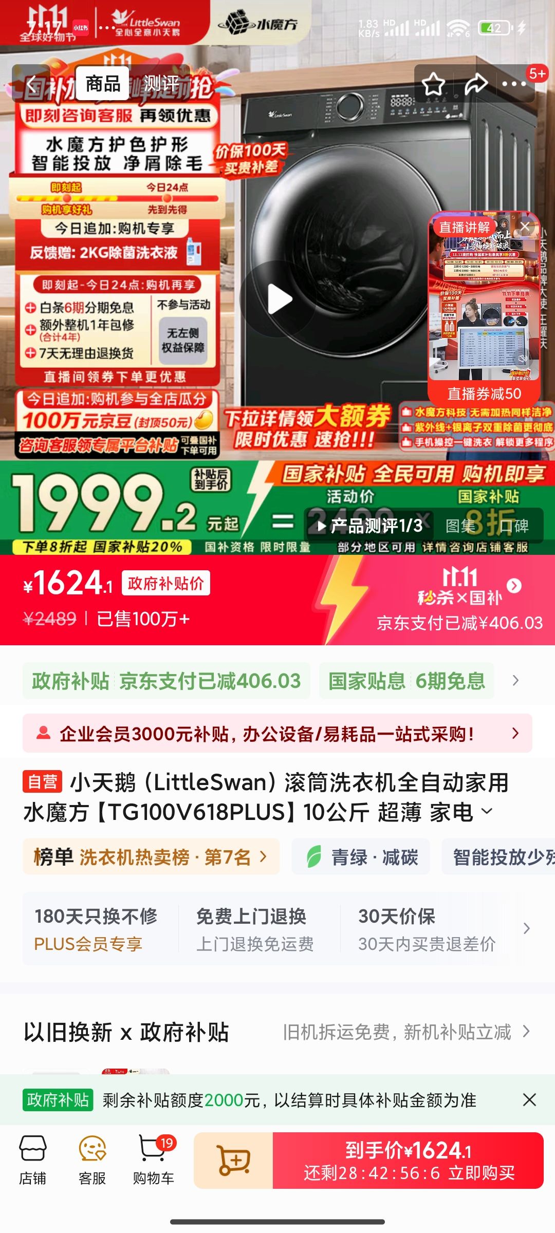 LittleSwan/小天鹅 水魔方 10kg 滚筒 TG100V618PLUS