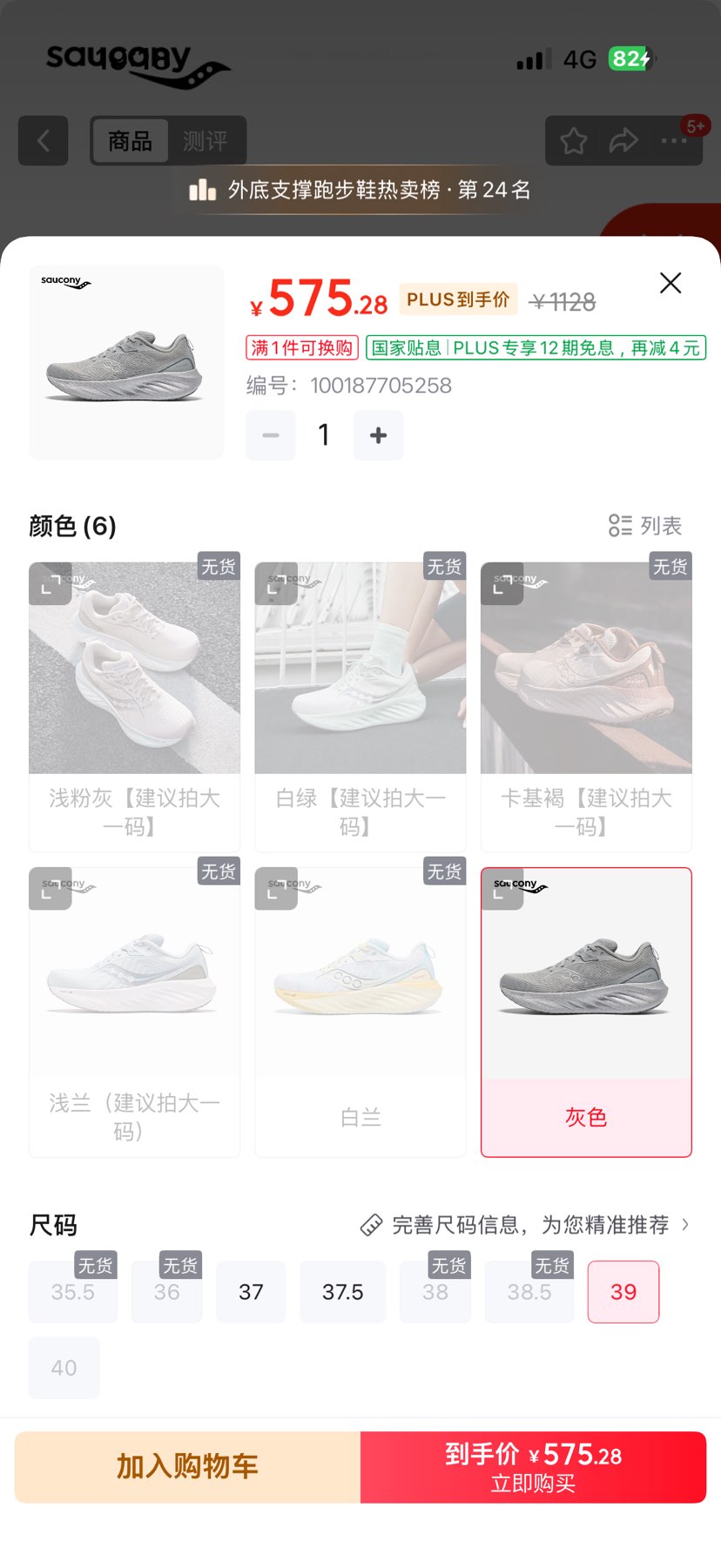 ???♀?彭于晏同款Saucony胜利22跑步鞋,灰色简约设计,轻盈缓震,舒适慢跑的不二选择!京东配送,轻松享受跑步乐趣。