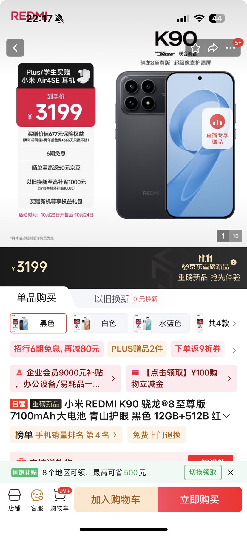 REDMI/红米 K90 手机 骁龙?8至尊版 黑色 12+512G
