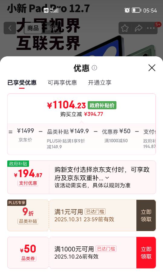 再降价:联想 Lenovo 小新Pad Pro 12.7 2025款 平板电脑(2.9K、天玑 8300、8GB、256GB、WiFi版、小青绿)