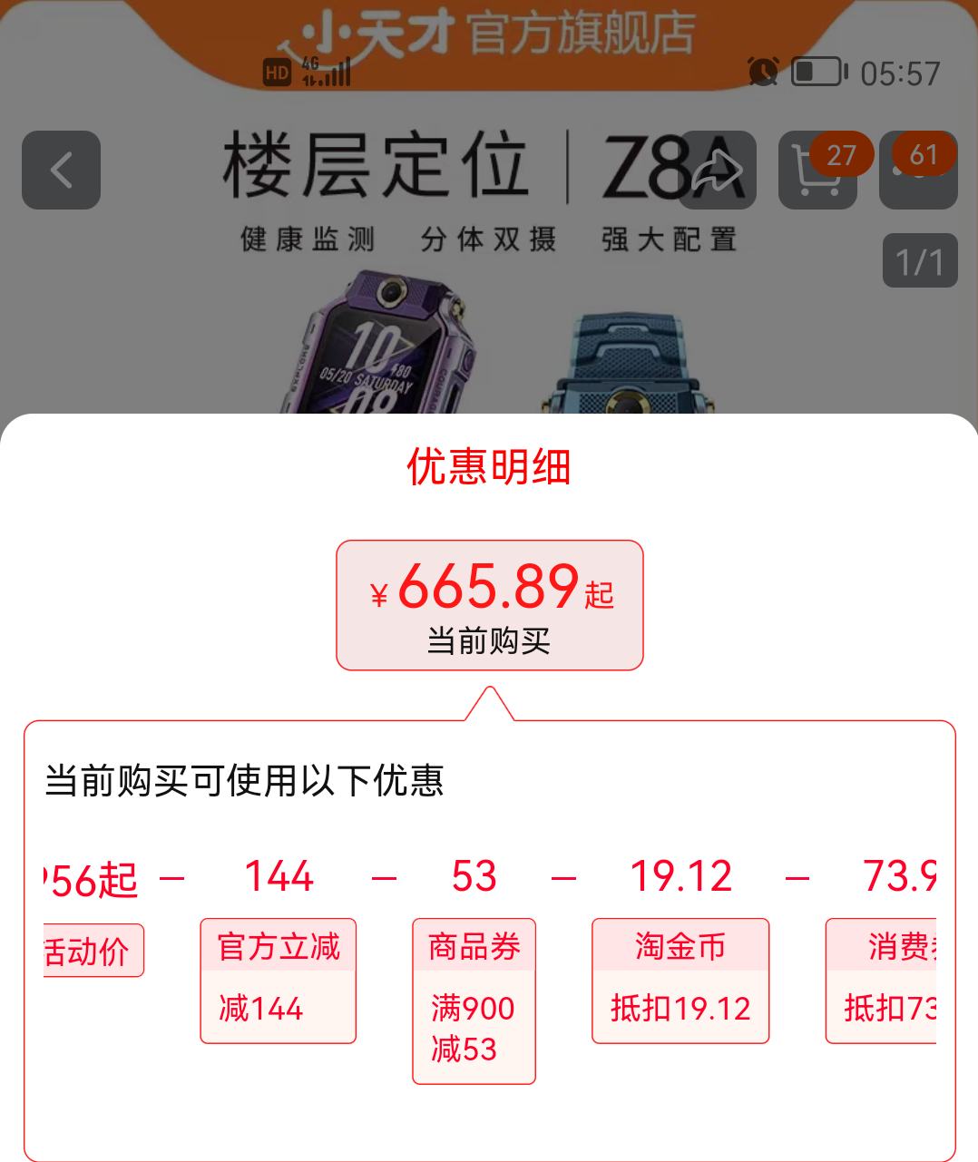 小天才 电话手表Z8A/Z6Pro少年儿童中小学生4G全网通智能手表双摄