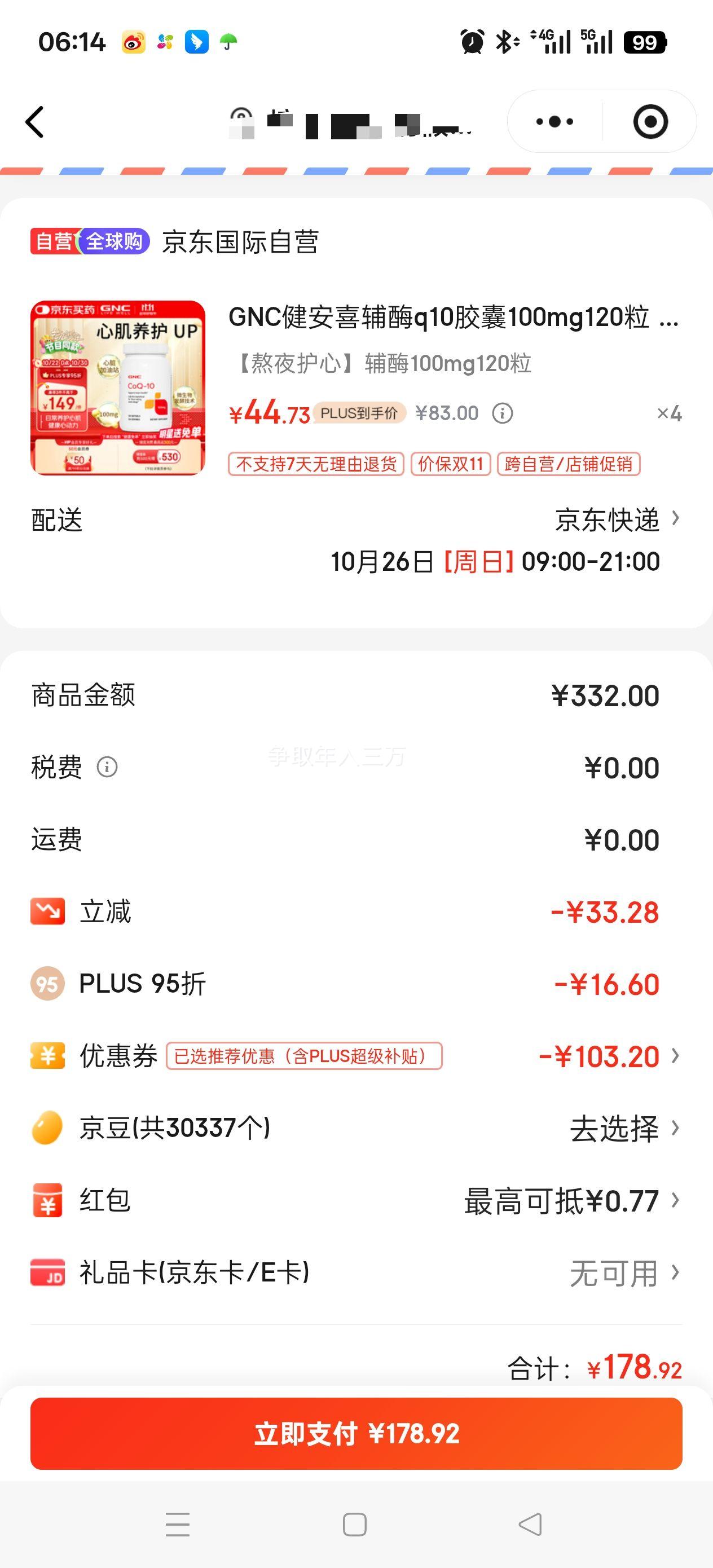 闭眼买、微信端 : GNC 健安喜 辅酶q10胶囊 100mg120粒*4件