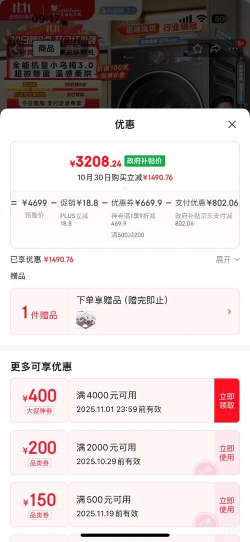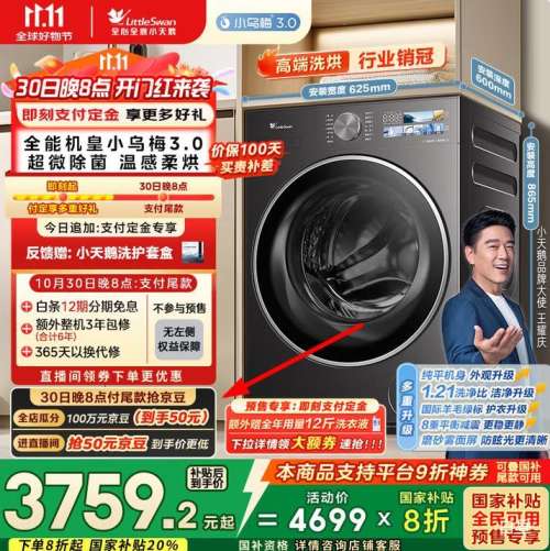 预售、PLUS:LittleSwan/小天鹅 小乌梅3.0 10kg 洗烘一体 TD10VE40
