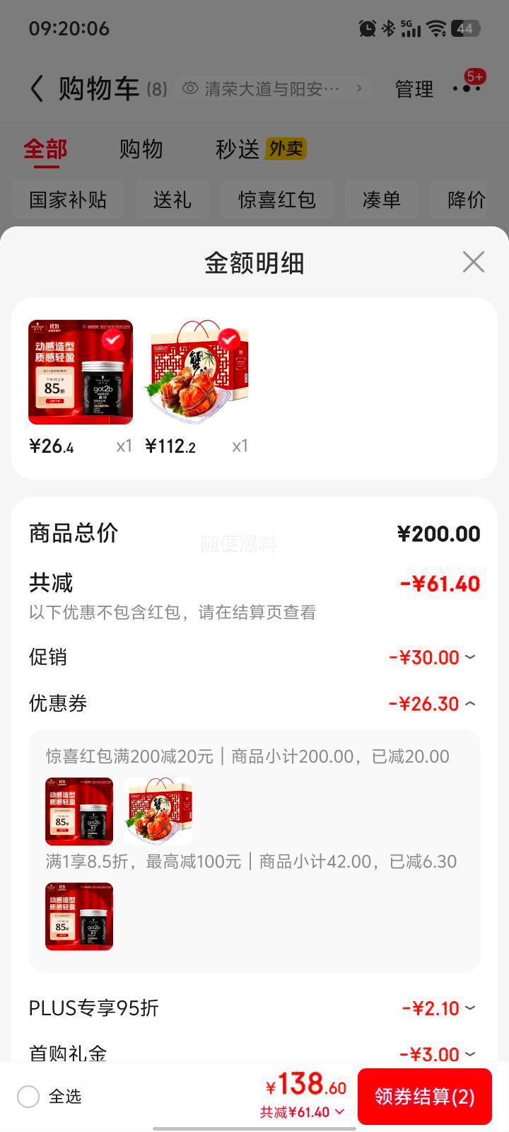 京东 双11超级惊喜红包 200-20*6张(领取链接)