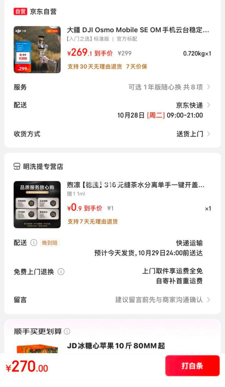 299元有plus30券凑单到手269.1