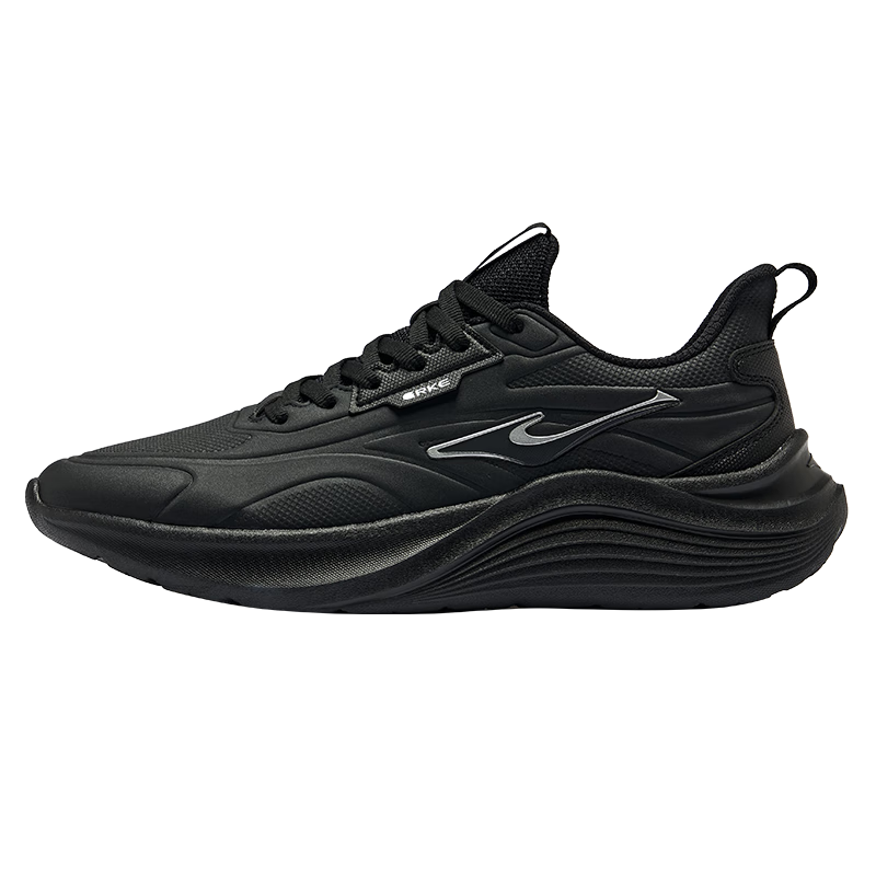 鸿星尔克 防泼水跑鞋子男纯黑革面鞋