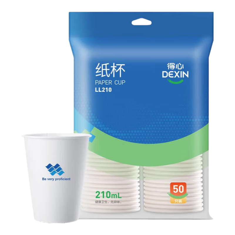 得力(deli)一次性水杯纸杯架家用办公一次性塑料杯加厚型大容量280ml三层防烫纸杯一次性水杯架 【得心系列50只装】简约单层纸杯-210ml