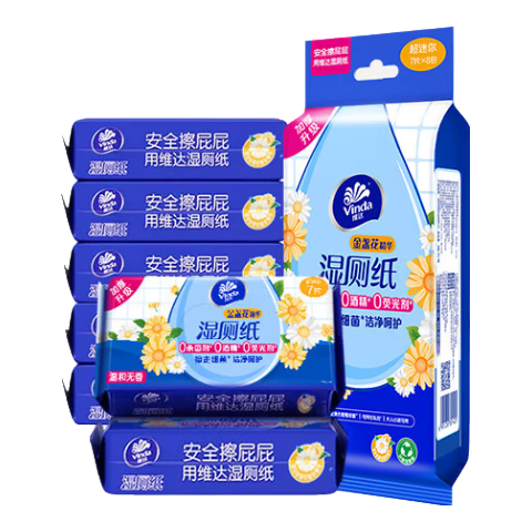 百亿补贴:维达(Vinda)湿厕纸 金盏花植萃精华 厕纸巾 卫生湿巾 纸私处可用男女通用 7片*8包