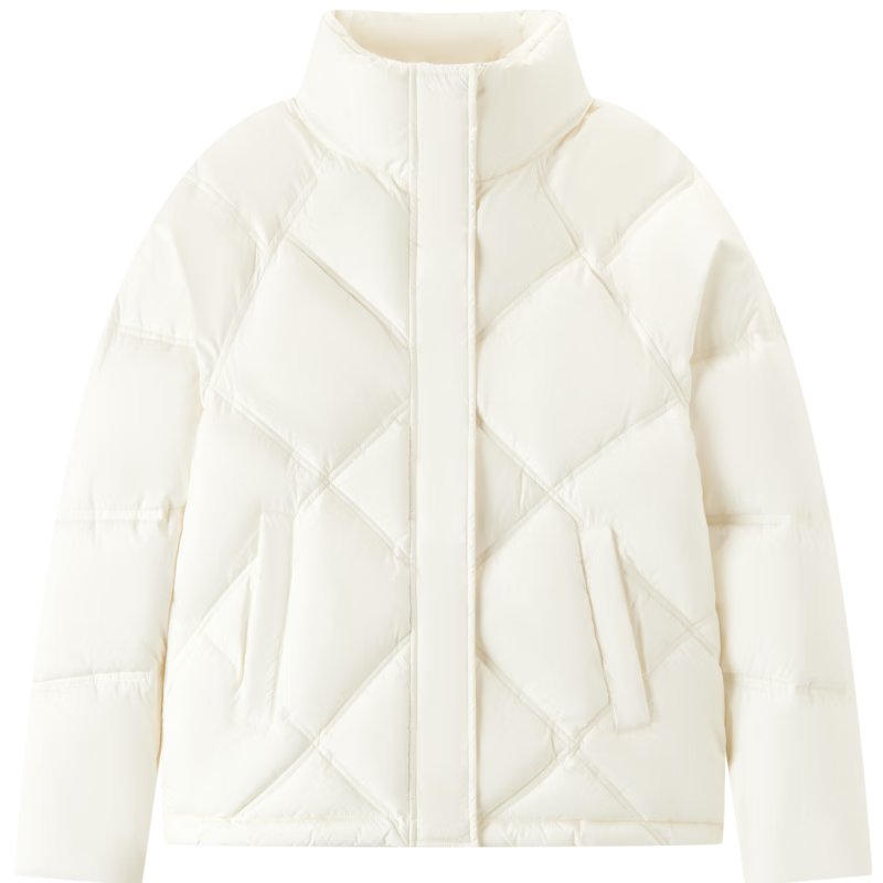 森马(Semir)棉服女宽松立领棉衣简约气质冬季温柔防水菱格厚外套 奶白10501 XL
