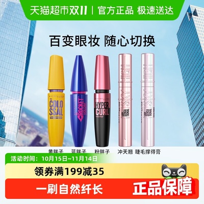 美宝莲睫毛膏睫毛撑得膏冲天翘黄胖子粉蓝胖子防水纤长卷翘不晕染