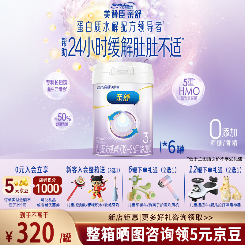 美赞臣亲舒3段奶粉 婴幼儿配方 1-3岁 部分适度水解蛋白 新国标 3段 800g 6罐 【会员专享】
